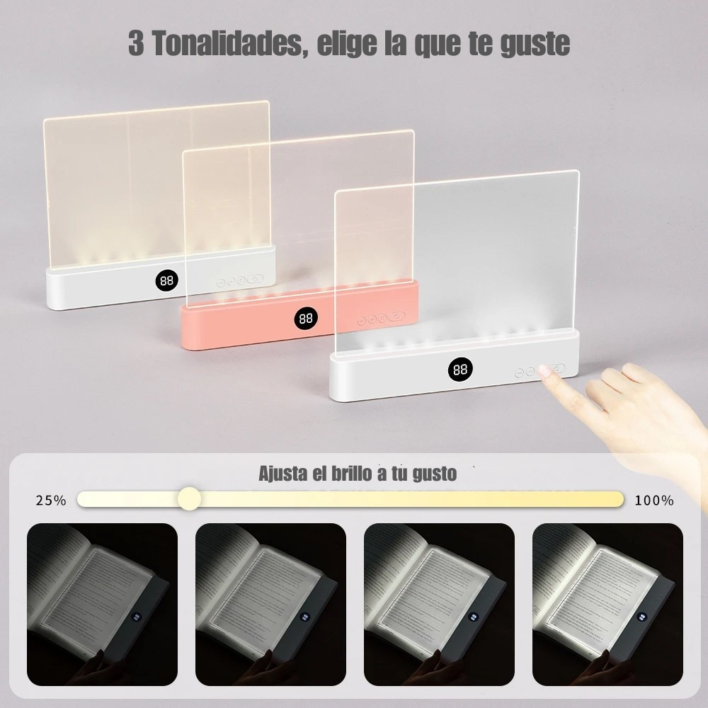 Descubre una nueva forma de leer por la noche, diseñado para ofrecer una luz suave, uniforme y dirigida únicamente a la página, te permite disfrutar de tus libros favoritos sin llenar la habitación de brillo innecesario.